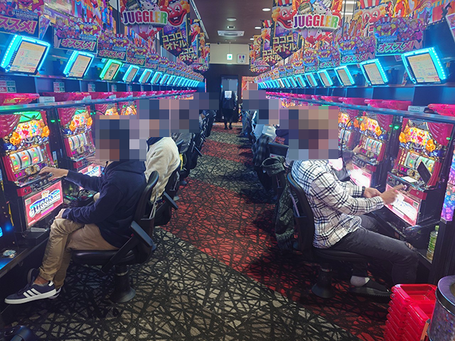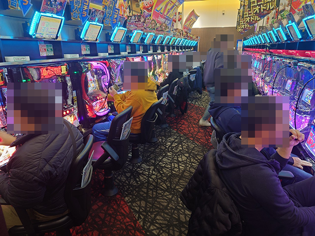 凄腕を披露しているプレイヤーを探すべく、パチスロコーナーを中心にまわっていこう!