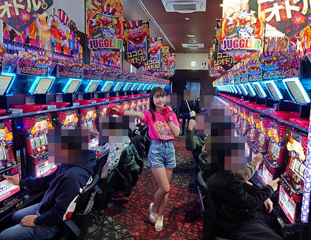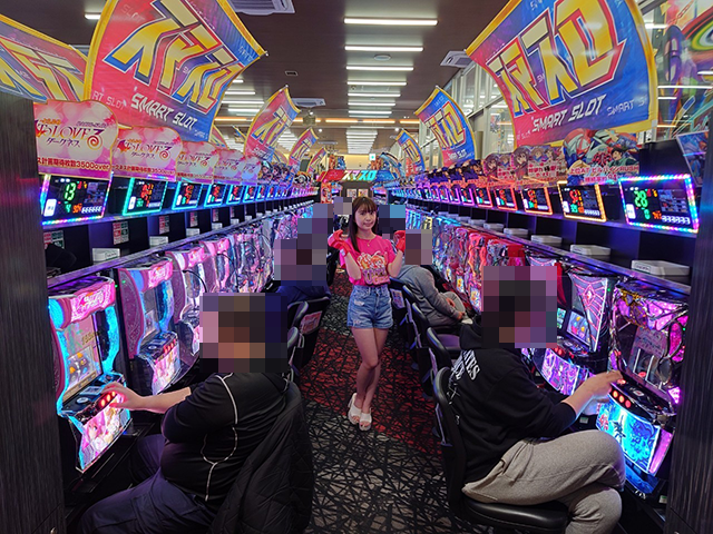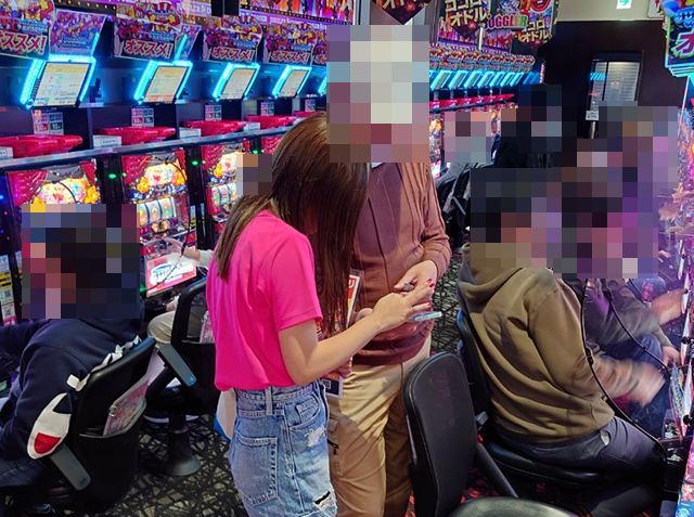 今回は、DMMぱちタウンのご案内などもおこない、プレイヤーたちとお話をしていました!