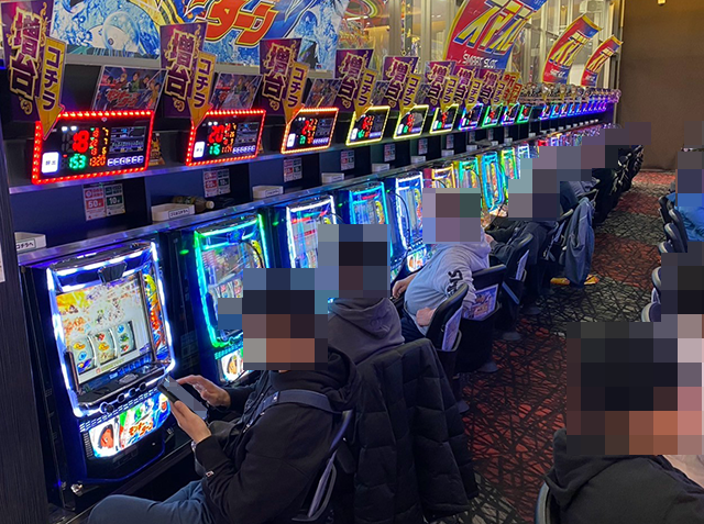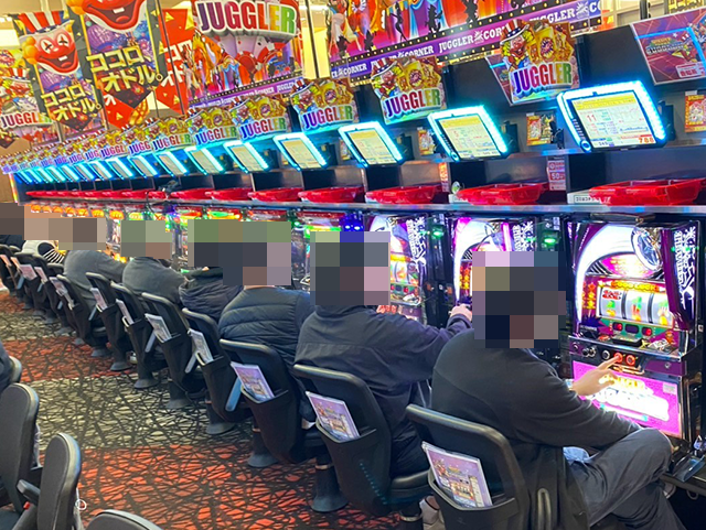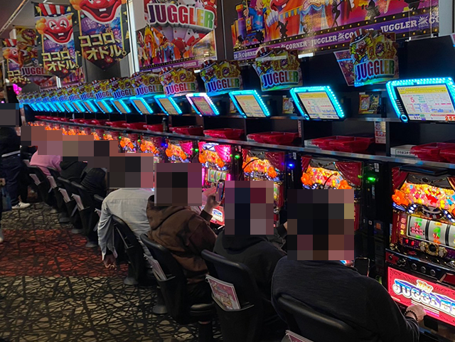 「ウルトラミラクルジャグラー」や「キングハナハナ-30」も空き台は少なく、ボーナスタイプ全体から活気が感じられました〜(^^)
