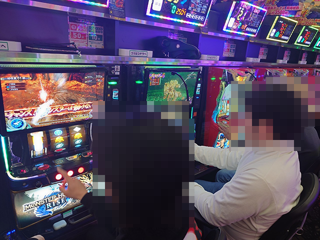 17時をまわった頃のパチスロでは、「スマスロ モンスターハンターライズ」に6,000pt超、「Lパチスロ ありふれた職業で世界最強」に4,000pt超の台アリ。