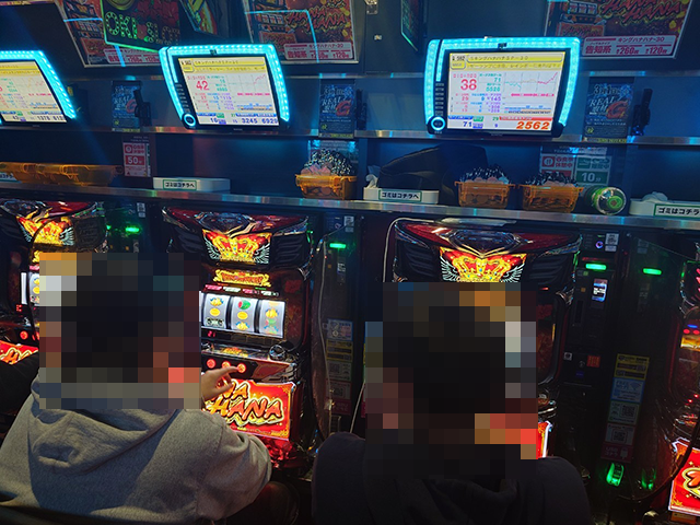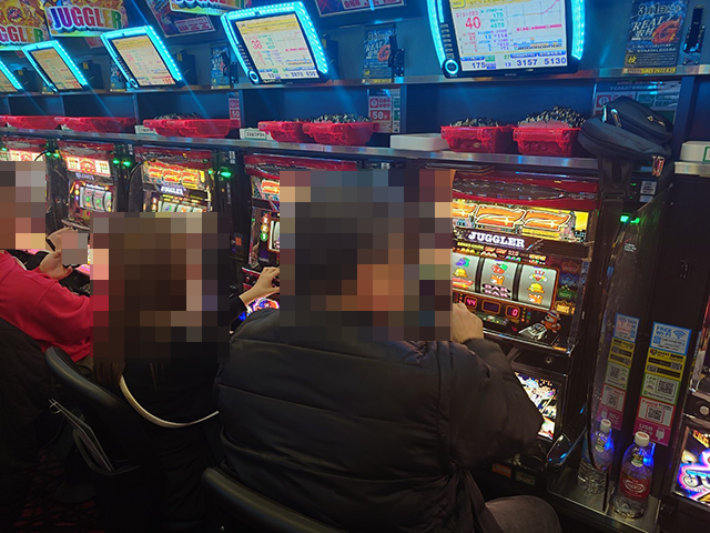 取材時に、「ファンキージャグラー2」や「ゴーゴージャグラー3」などで、2箱以上の持ち玉を確認した。