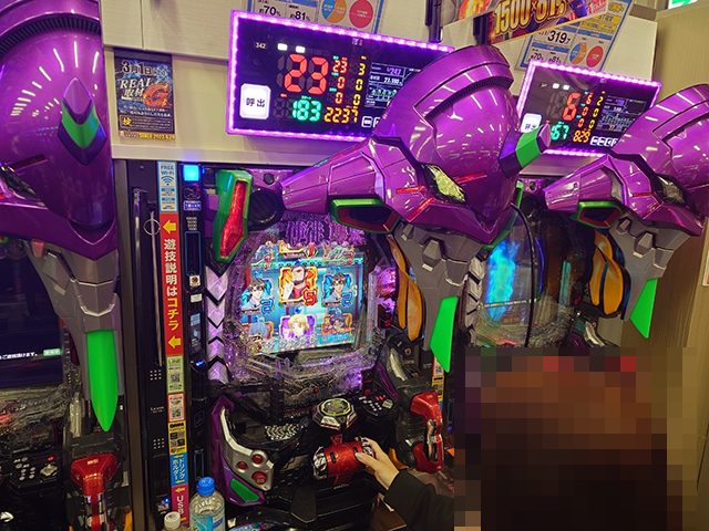 取材時のパチンコでは、「新世紀エヴァンゲリオン~未来への咆哮~」や「Pフィーバー戦姫絶唱シンフォギア3黄金絶唱」に、すでに20,000pt以上を記録している台があった。