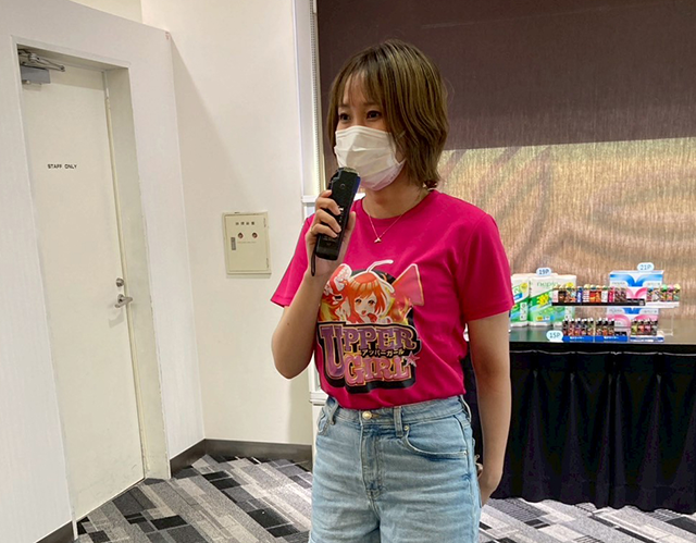 佳永ちゃんは、パワフルなアッパーを探しながら、パチスロコーナーをラウンド!