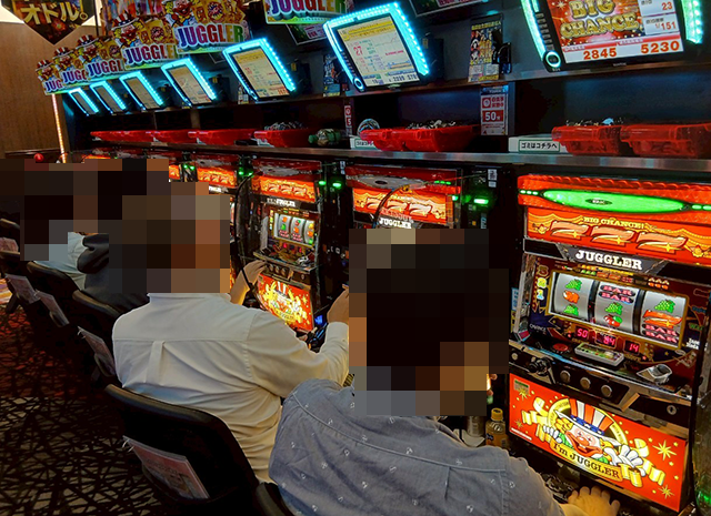 取材時の稼働率は高く、幅広い機種で遊技を楽しむ姿がみられた。