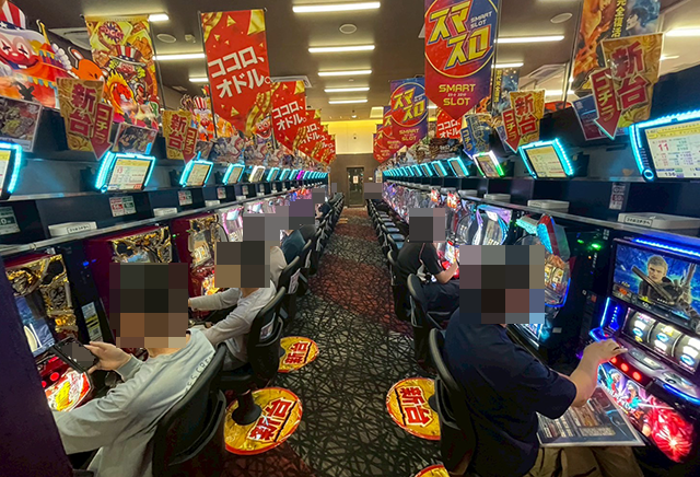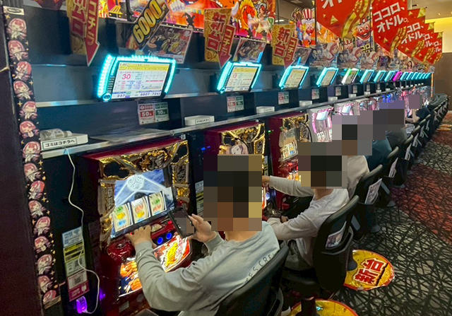 パチスロをみると、最新機種の「いざ!番長」に活気のある景色が広がっていた。