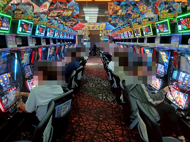 「スマスロ北斗の拳」で遊技をおこなっているプレイヤーも多く、伝わってくるにぎわいも大きい。