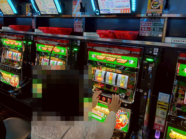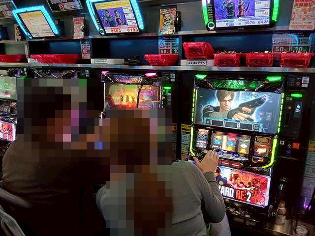 「パチスロ バイオハザード RE:2」にて、3箱以上の持ち玉で遊技をおこなっている姿を目撃。
