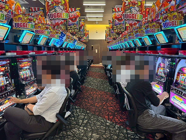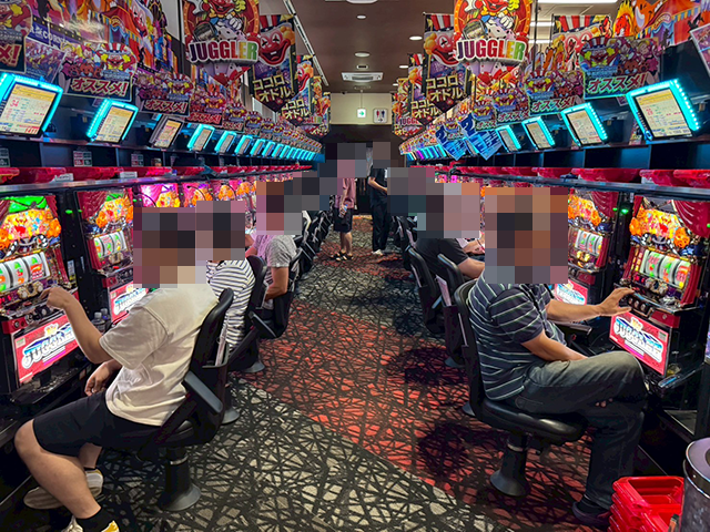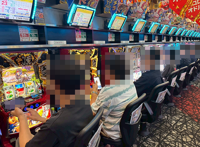 15時頃のパチスロでは、「いざ!番長」や「スマスロモンキーターンV」が人気を集め、盛況となっていた。