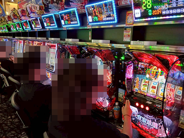 取材時は満席となっており、出玉が4,000ptを超えている台もあった。