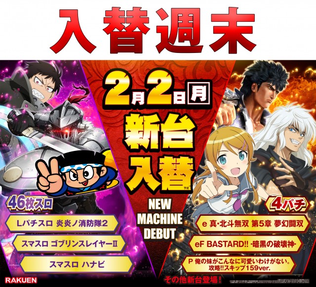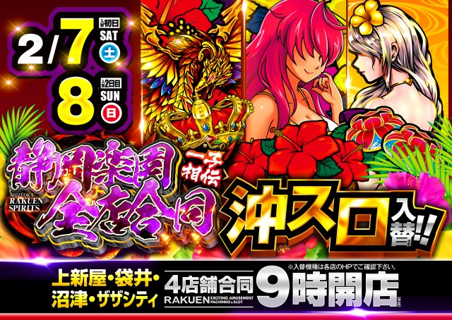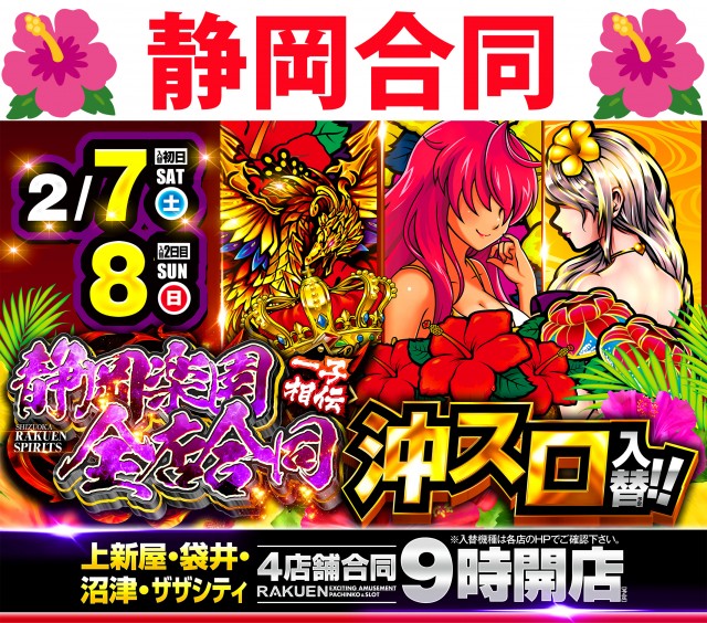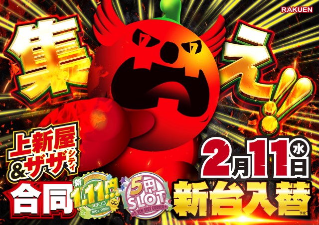 【楽園浜松ザザシティ店】2月11日合同新台入替🌟😍