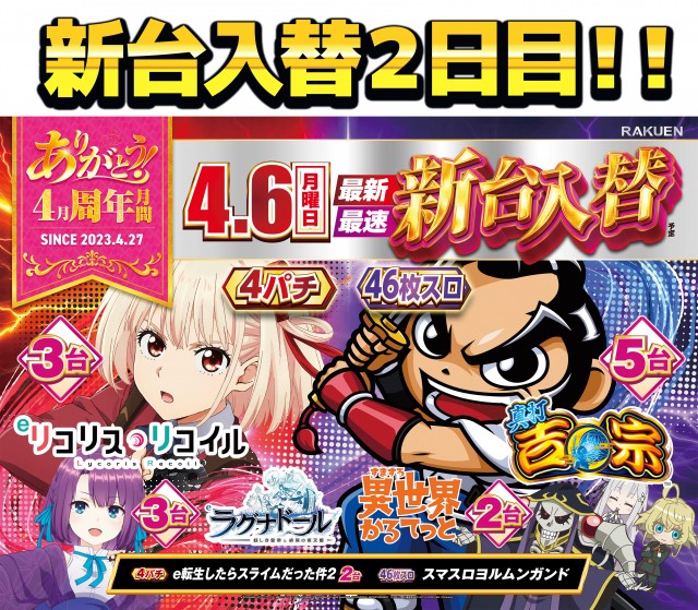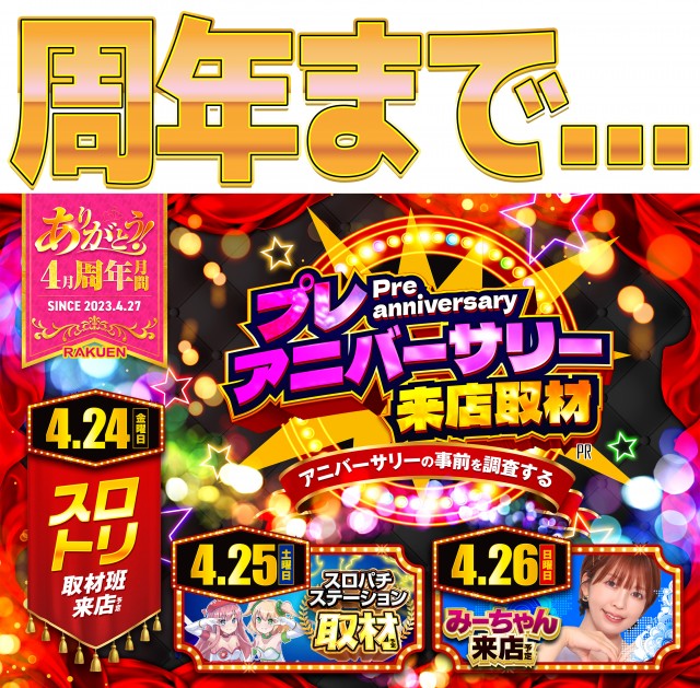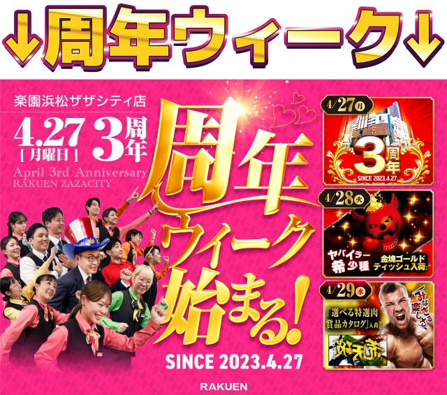 【楽園浜松ザザシティ店】まもなく周年😊お楽しみください🌟