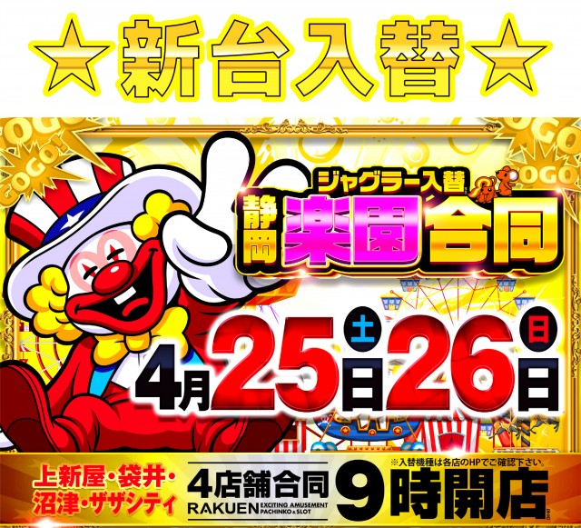 【楽園浜松ザザシティ店】新台入替💗取材も予定してます😊