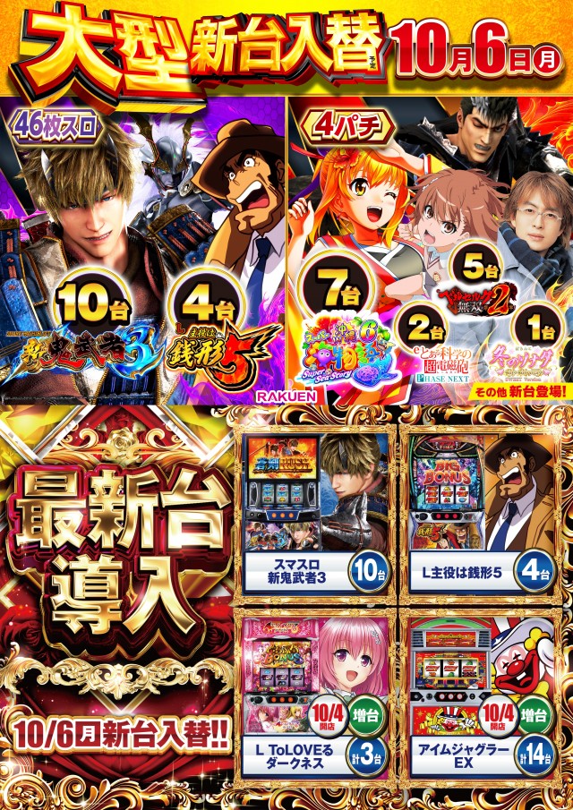 【楽園浜松ザザシティ店】大型新台入替済😍