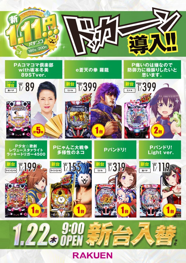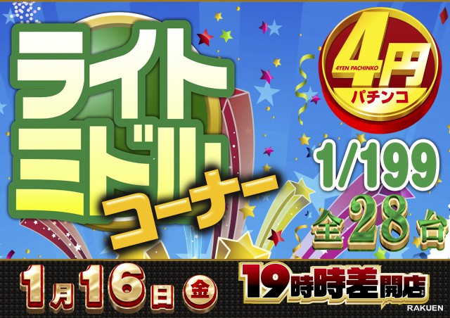 【楽園ザザシティ店】パチンコライトミドルコーナー時差開店予定