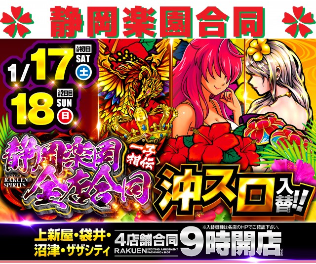 【楽園浜松ザザシティ店】沖スロ静岡全店合同入替😍