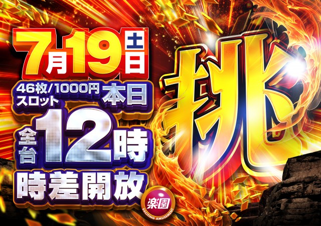 【楽園浜松ザザシティ店】明日46枚スロットのみ12時時差開放