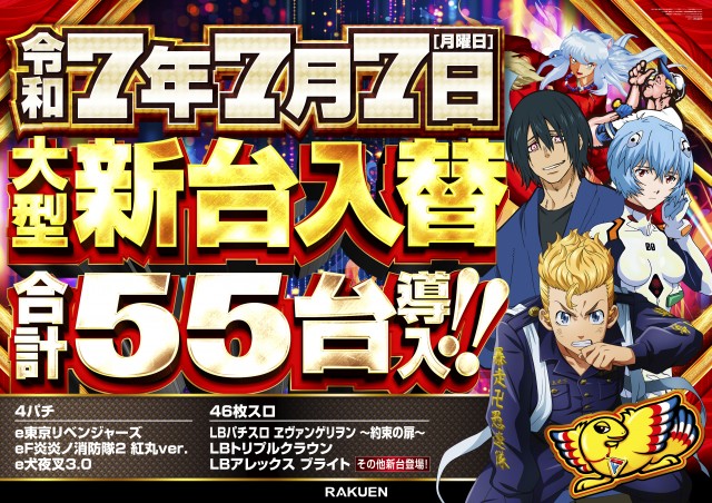 【楽園浜松ザザシティ店】新台入替初日😍令和7年7月7日♪