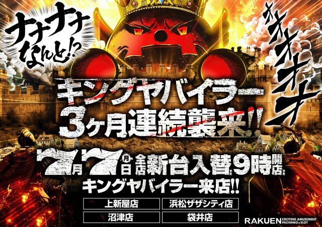 【楽園浜松ザザシティ店】7月バチバチいこーぜ😍