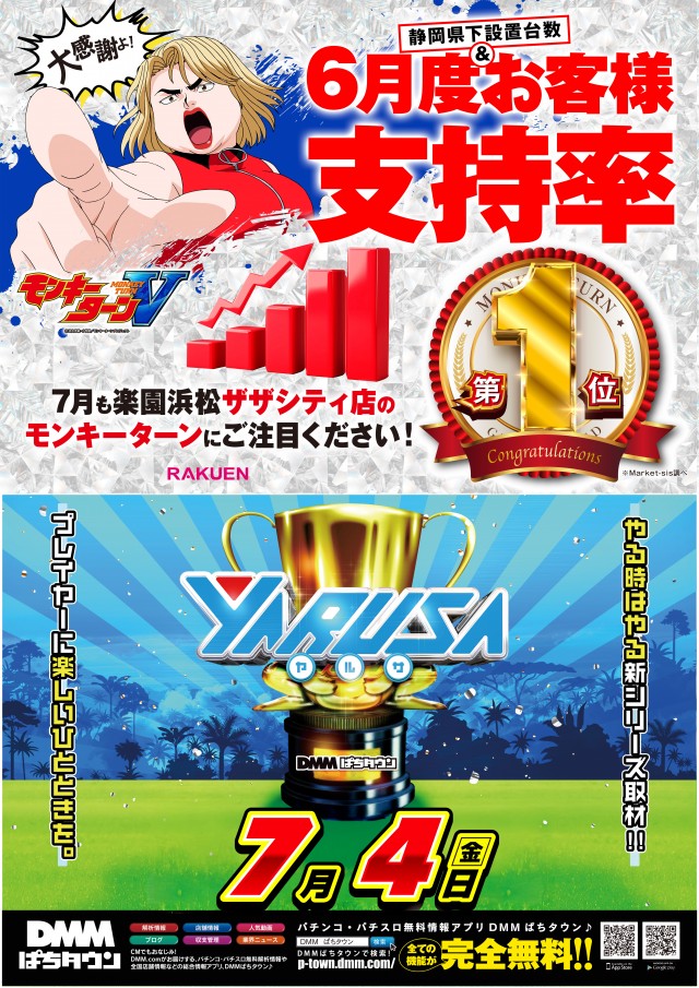 【楽園浜松ザザシティ店】明日から7月😍<バチバチ行こうぜ♪