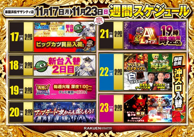 【楽園浜松ザザシティ店】今週も始まります❕❗新台入替🌷