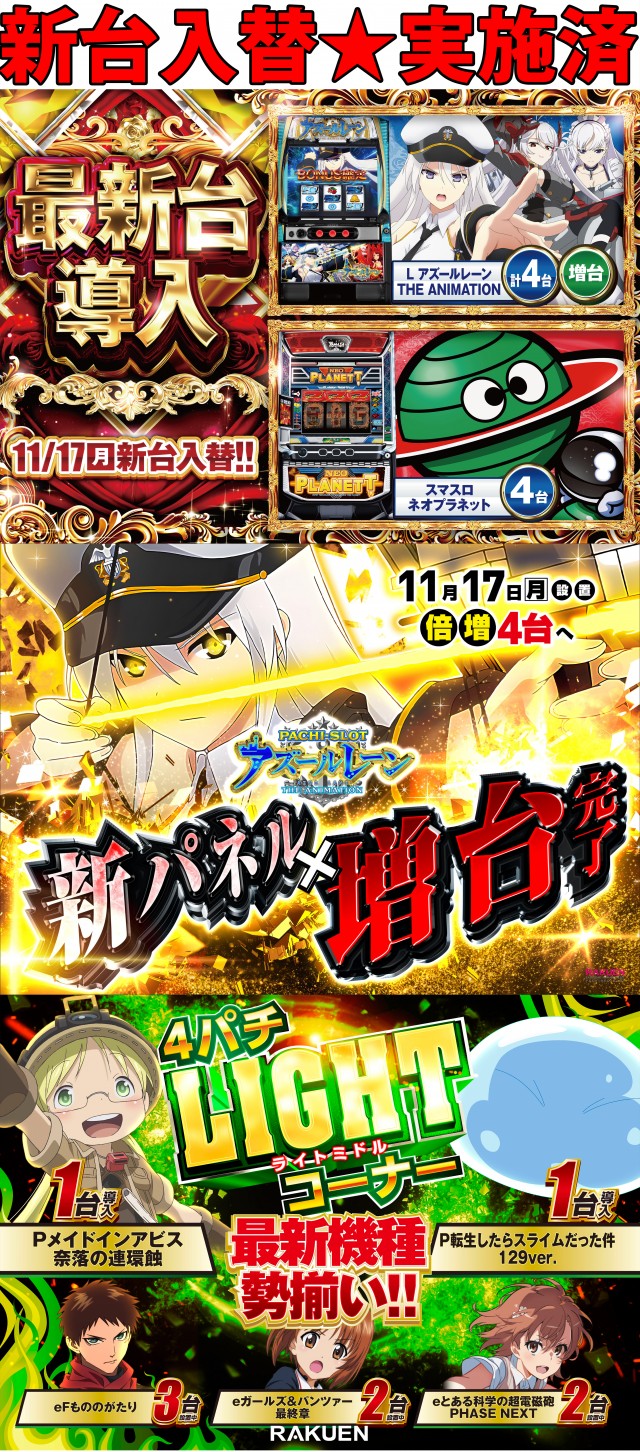 【楽園浜松ザザシティ店】新台入替実施済🌝
