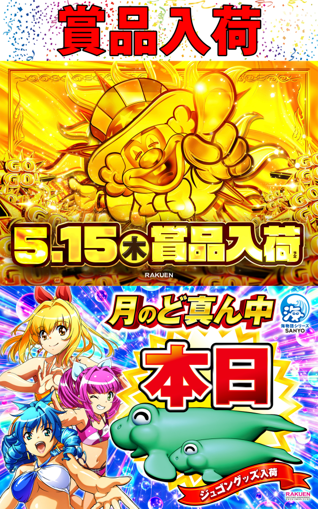 【楽園浜松ザザシティ店】本日‼賞品入荷予定😍
