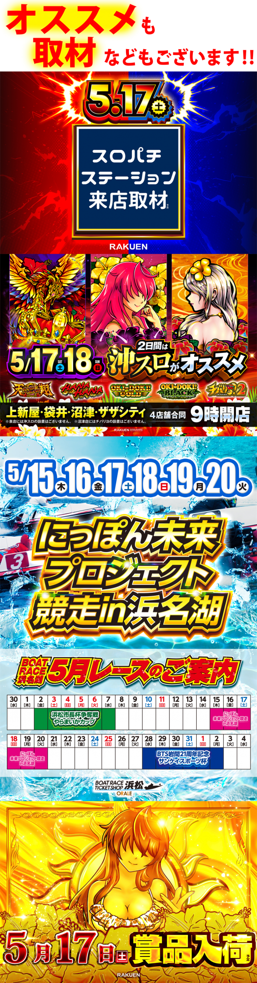 【楽園浜松ザザシティ店】入替週末🌝楽園でお楽しみ下さい💗