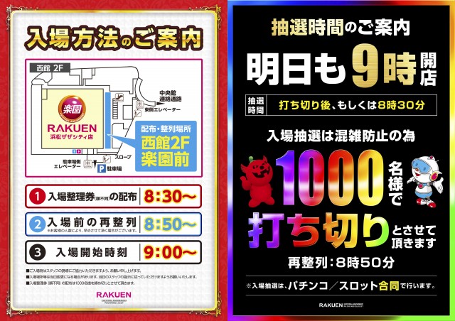楽園浜松ザザシティ店のお知らせ一覧