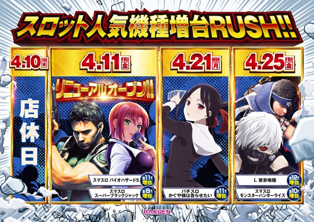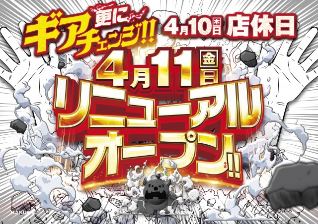 明日4月10日はリニューアル準備の為1日お休みをいただきます翌4月11日は朝9時から22時40分までの営業予定です