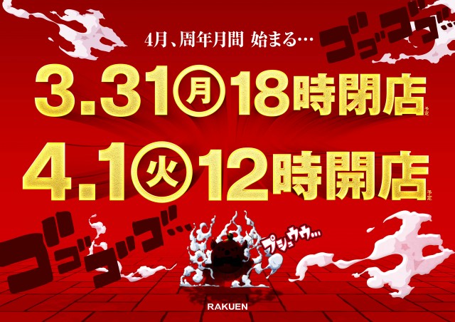【楽園浜松ザザシティ店】明日12時開店‼周年月間始動‼