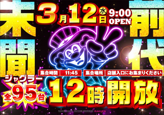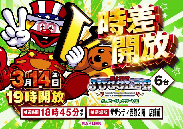 【楽園浜松ザザシティ店】本日19時時差開放ございます♪