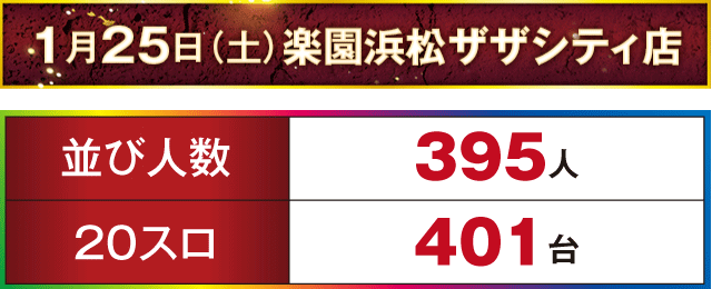 今回は土曜日ということもあり、20スロの台数とほぼ同じ400人弱のプレイヤーが大集結したのだが、店内ではどのような盛り上がりを見せたのか? 熱気に包まれた当日の様子を詳細データともに紹介していこう。