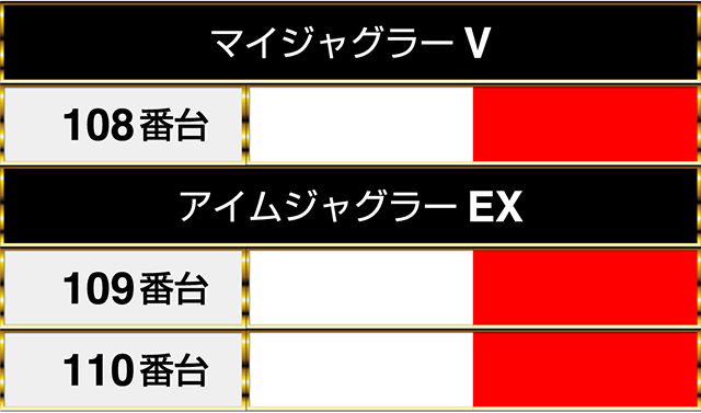 108番台はとなりにある『アイムジャグラーEX』の2台と連なってプラスptを記録した。