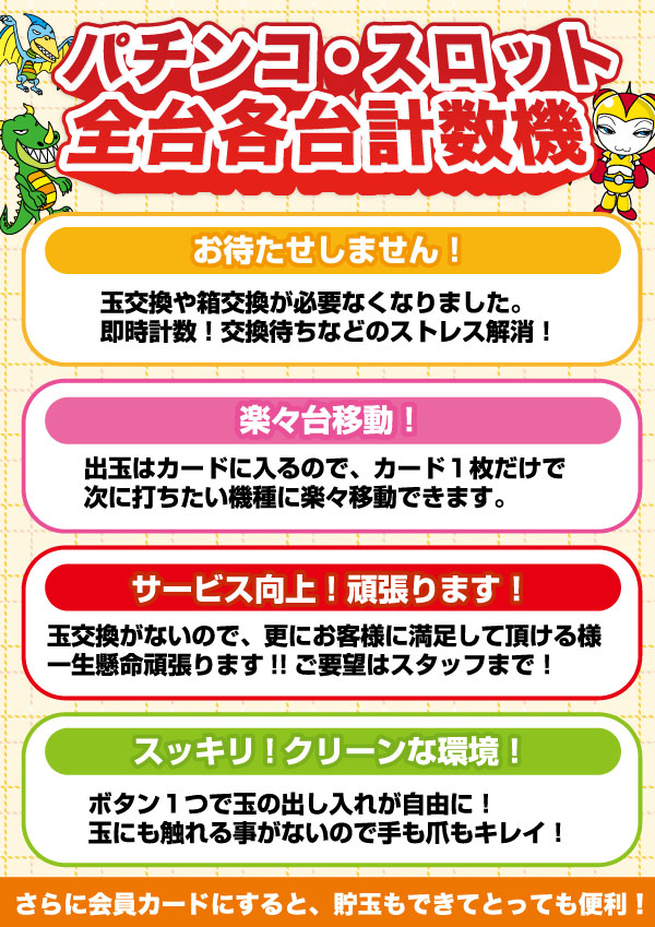 充実した設備で、安心して遊技をお楽しみいただけます。 |