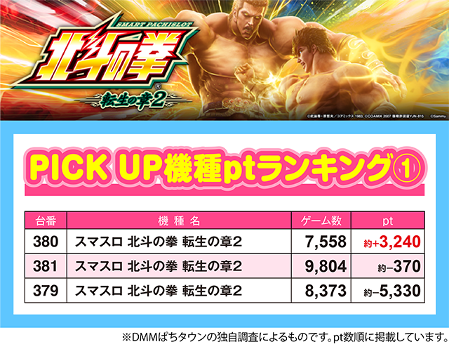 「スマスロ 北斗の拳 転生の章2」の380番台は約+3,200ptオーバー。