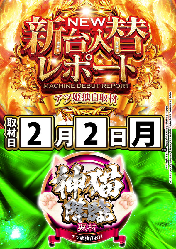 明日2月2日(月)新台入替初日予定!