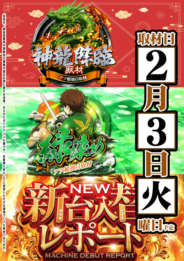 明日2月3日(火)新台入替初日!!
