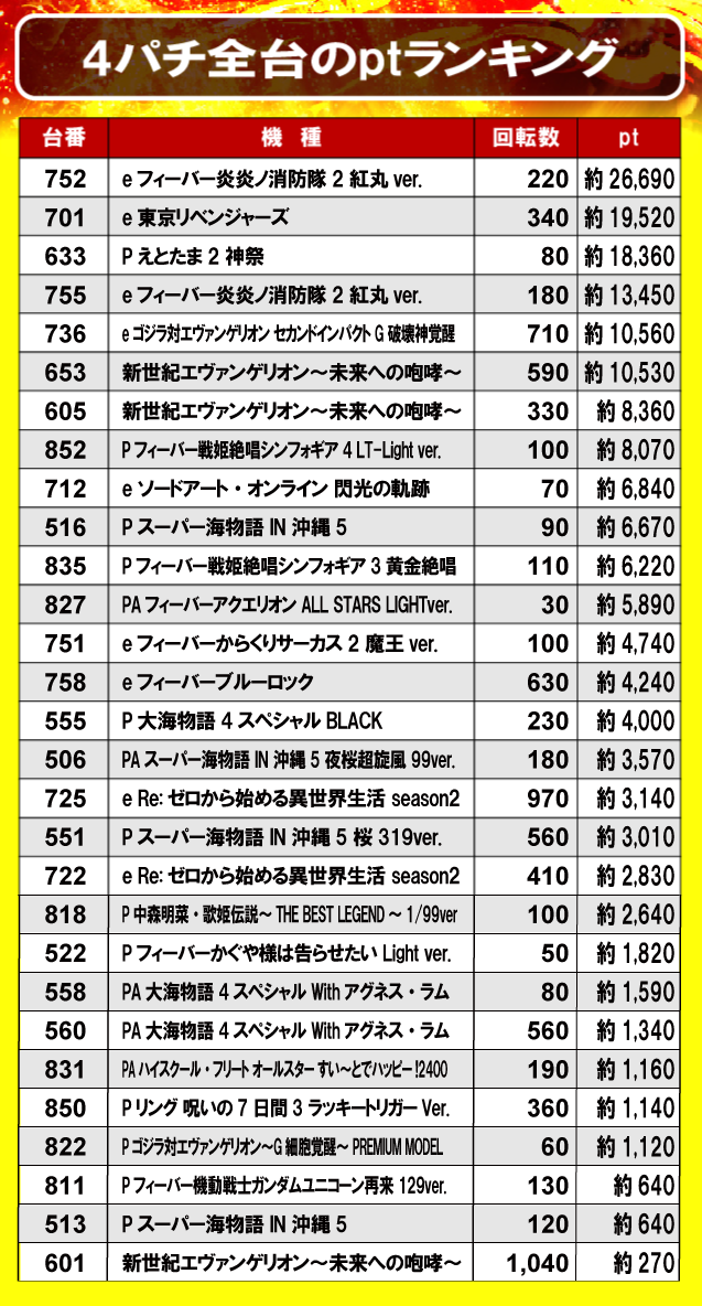 ②4パチ全台のptランキング