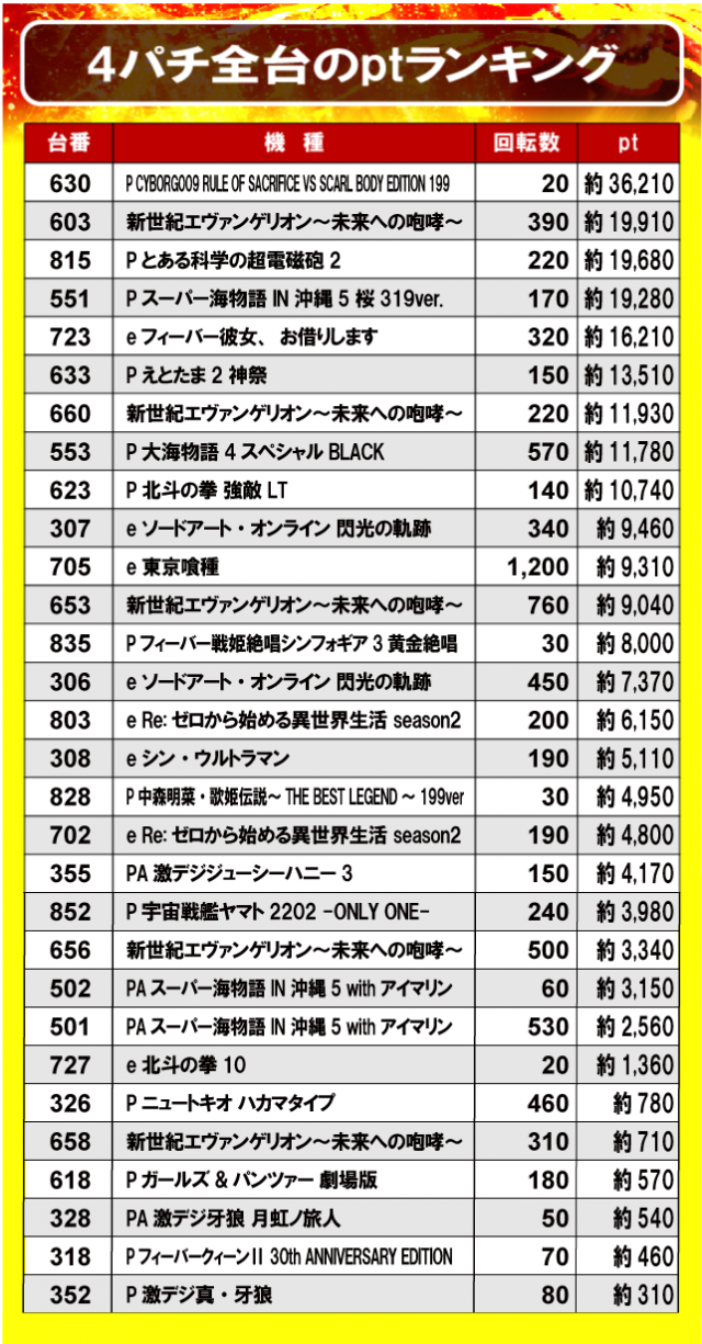 ②4パチ全台のptランキング