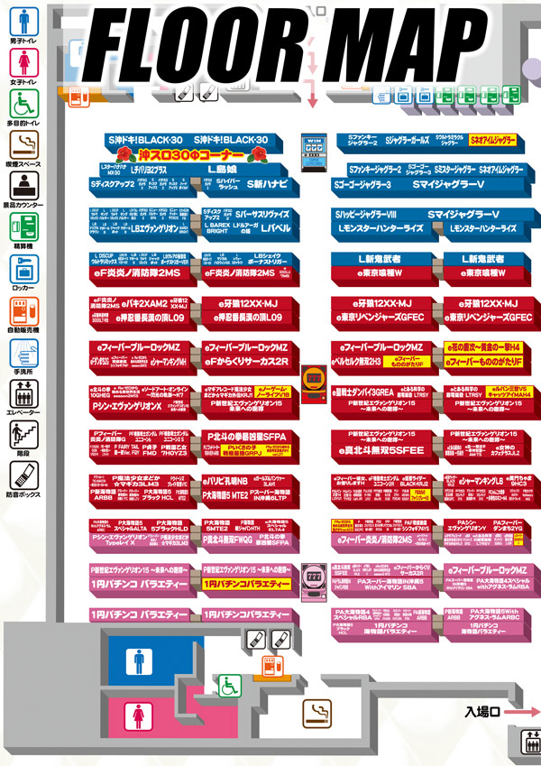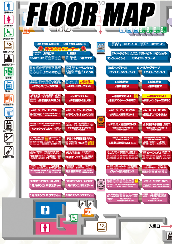 200円/180玉パチ:168台 500円/114玉パチ:453台 |