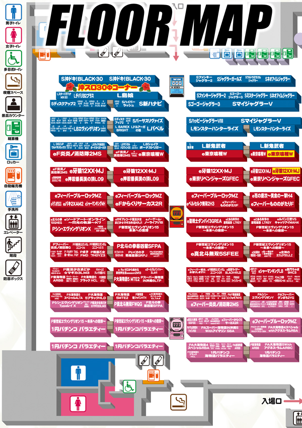 200円/180玉パチ:168台 500円/114玉パチ:453台 |