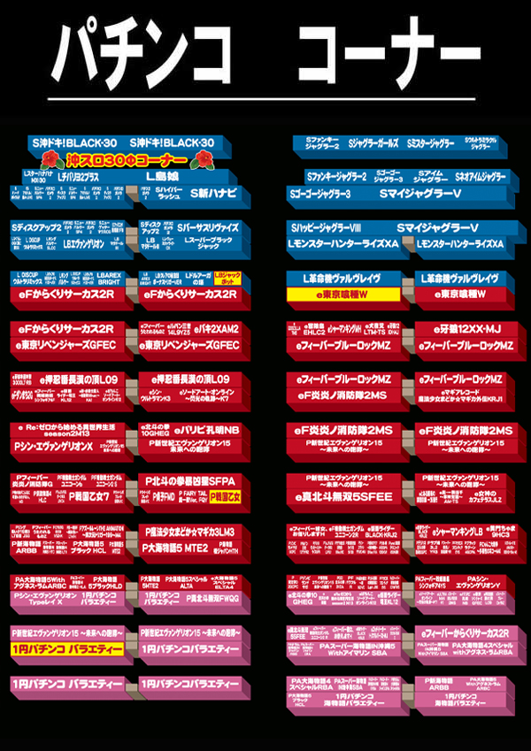 200円/180玉パチ:168台 500円/114玉パチ:453台 |