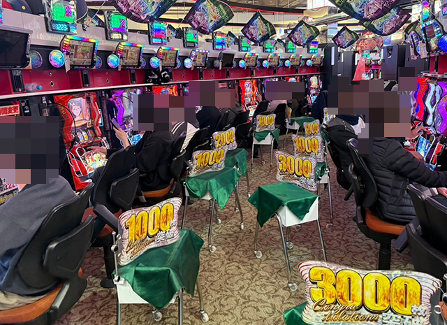 『スマスロ モンスターハンターライズ』も空き台はなく、遊技を満喫しているような姿が並んでいた。