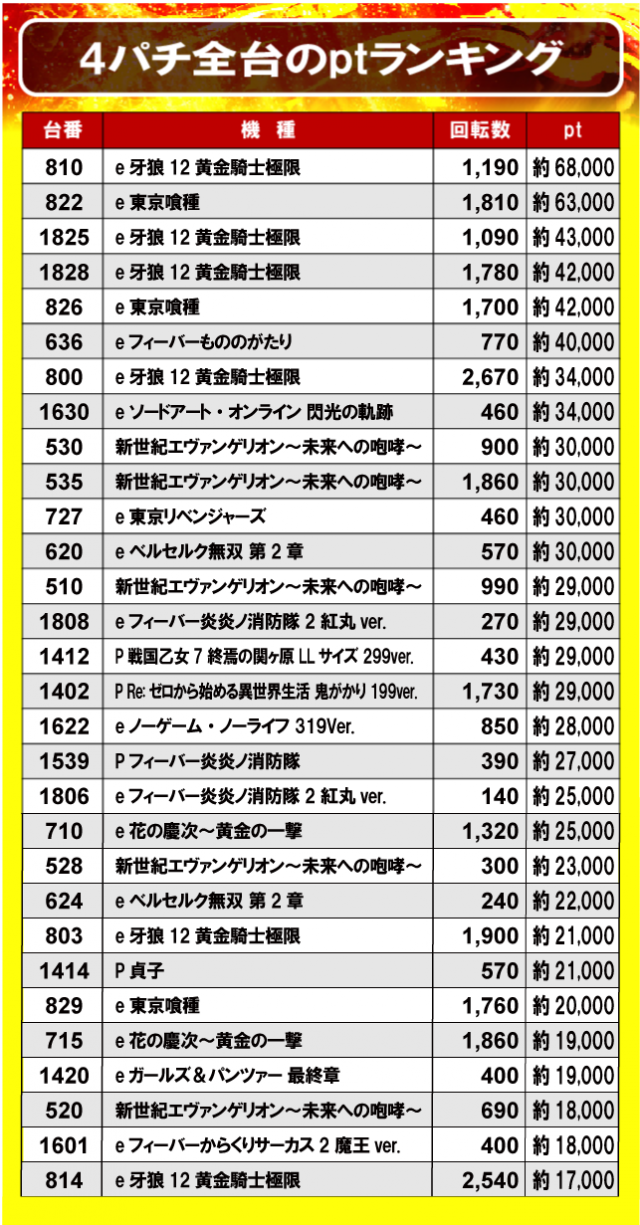 ②4パチ全台のptランキング