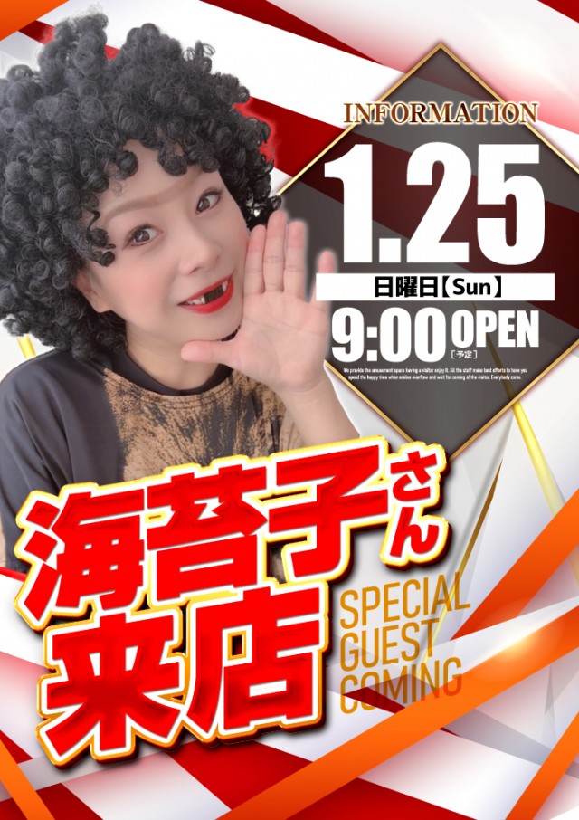 本日“海苔子”さん来店!ジャグラーシリーズ全43台設置!