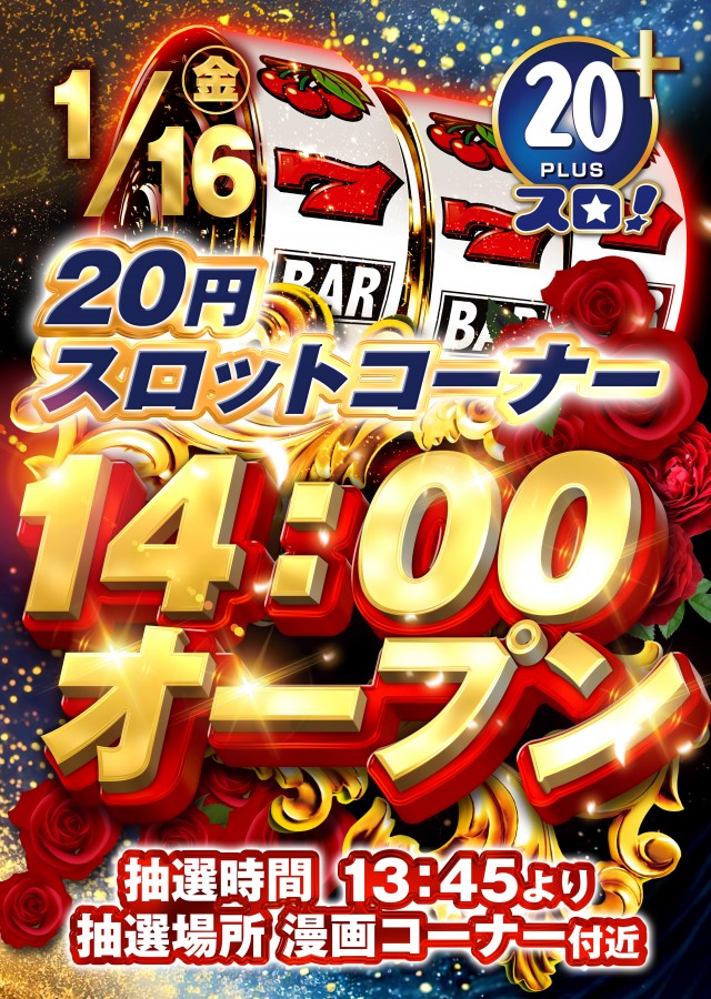20円スロット14時OPEN!!