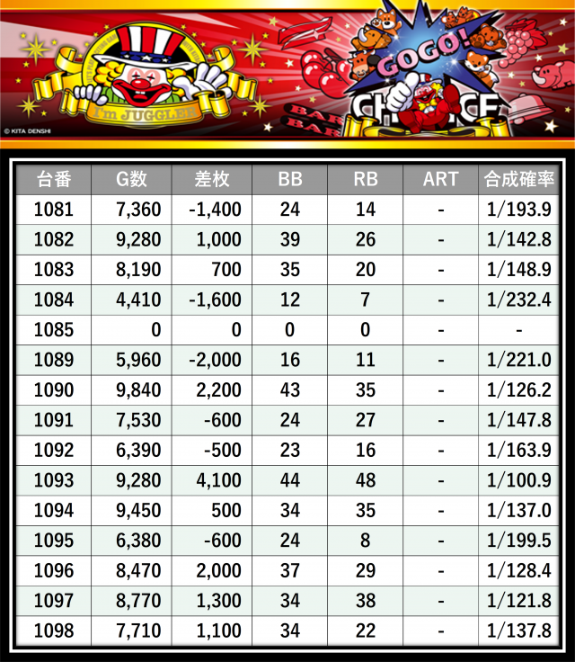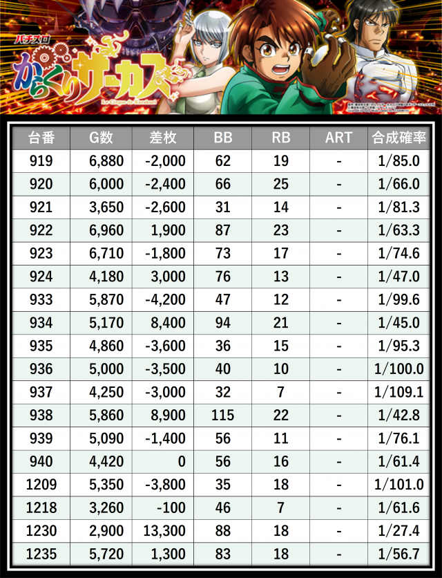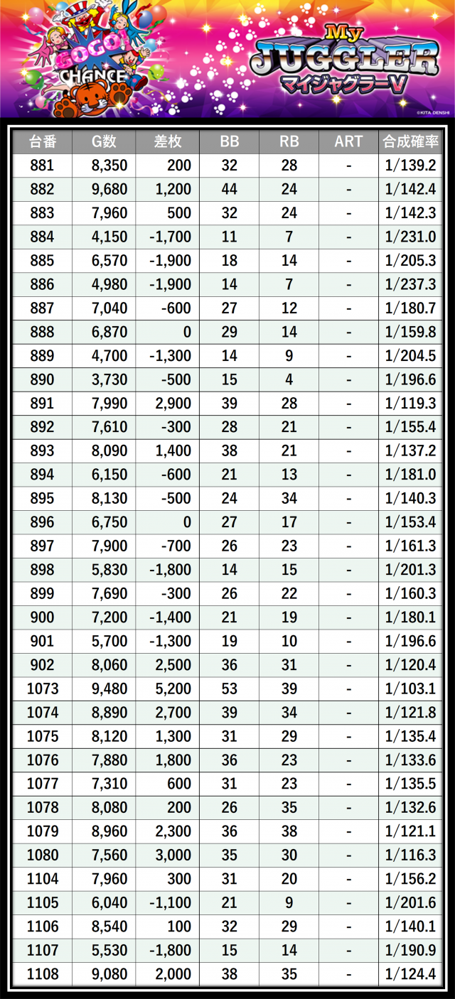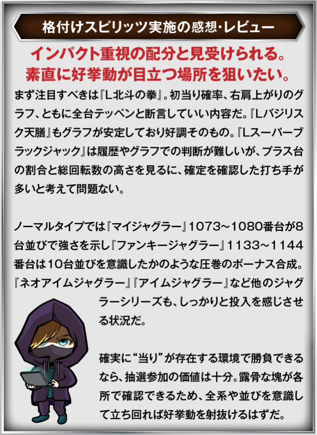 その結果の中から、ぱちタウンが注目すべきポイントを厳選してユーザーにお届け!プレイヤーが楽しんだ一日を下記データにて振り返ってみて欲しい。