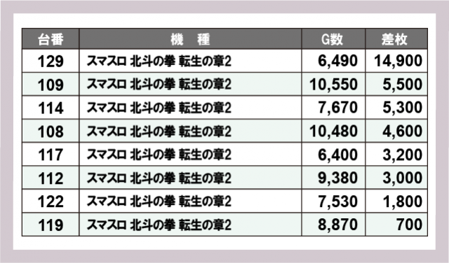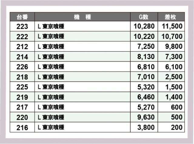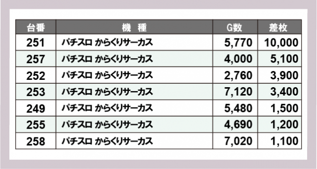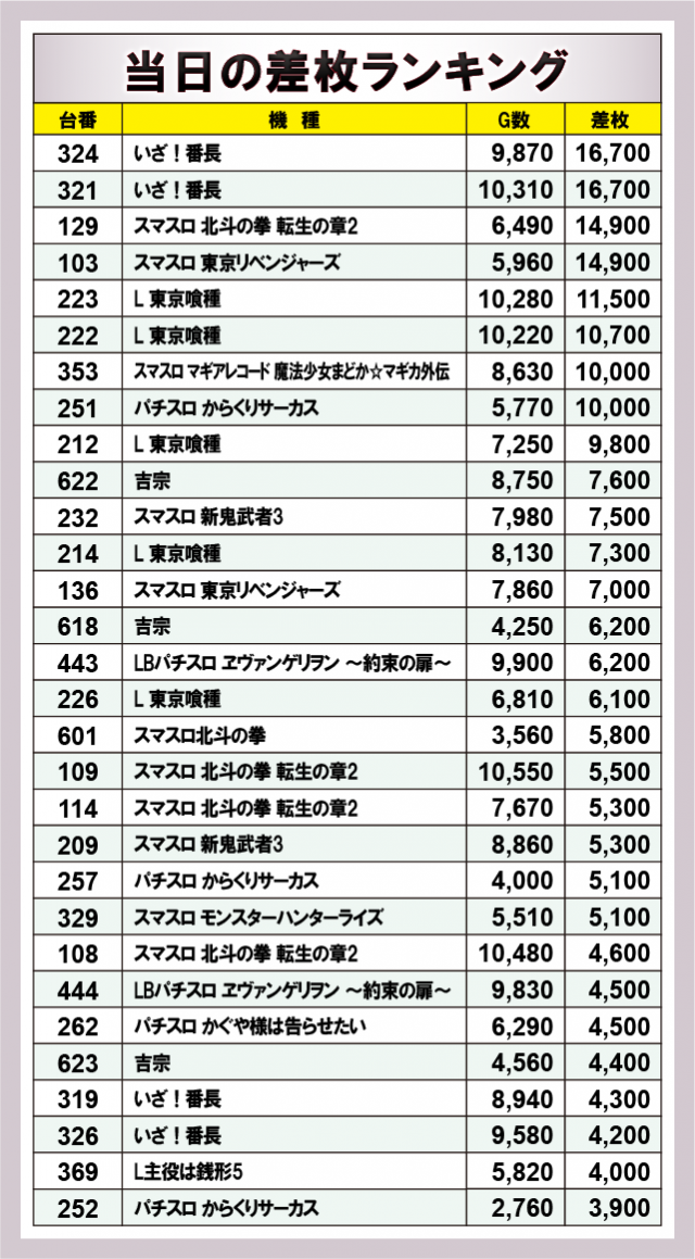 ※差枚数順に掲載しています