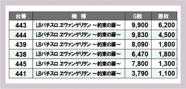※台番号順に掲載しています