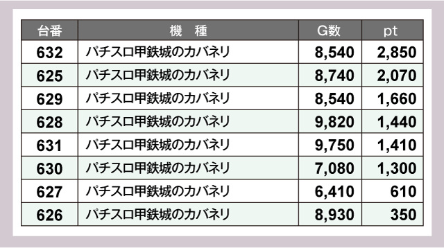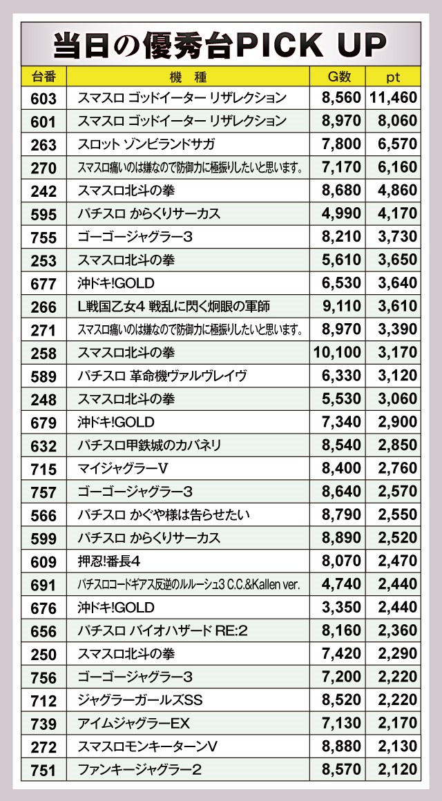※差枚pt順に掲載しています。